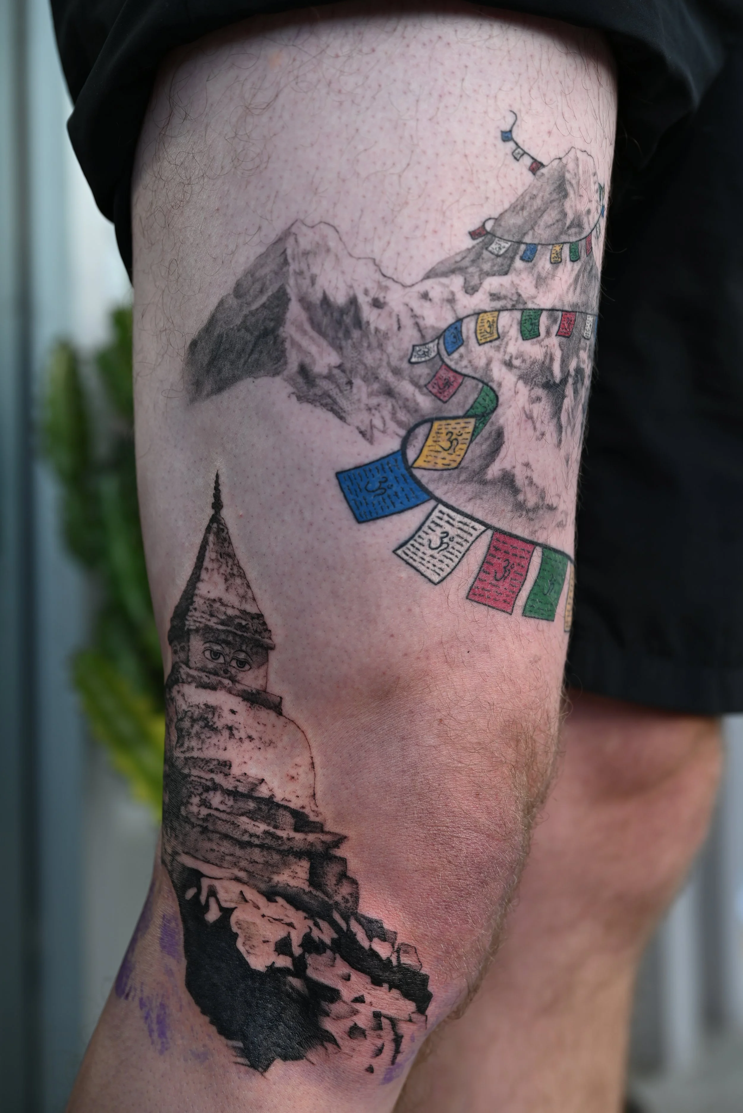 This was the first and second session on Erics leg. Mt. Amadablam, part of the Himalayan mountain range, located in Khumbu valey of Nepal along with the a buddhist stupa that can be found on the trail. We plan on building on to this, crating a realistic design of the trail leading up to the basecamps.