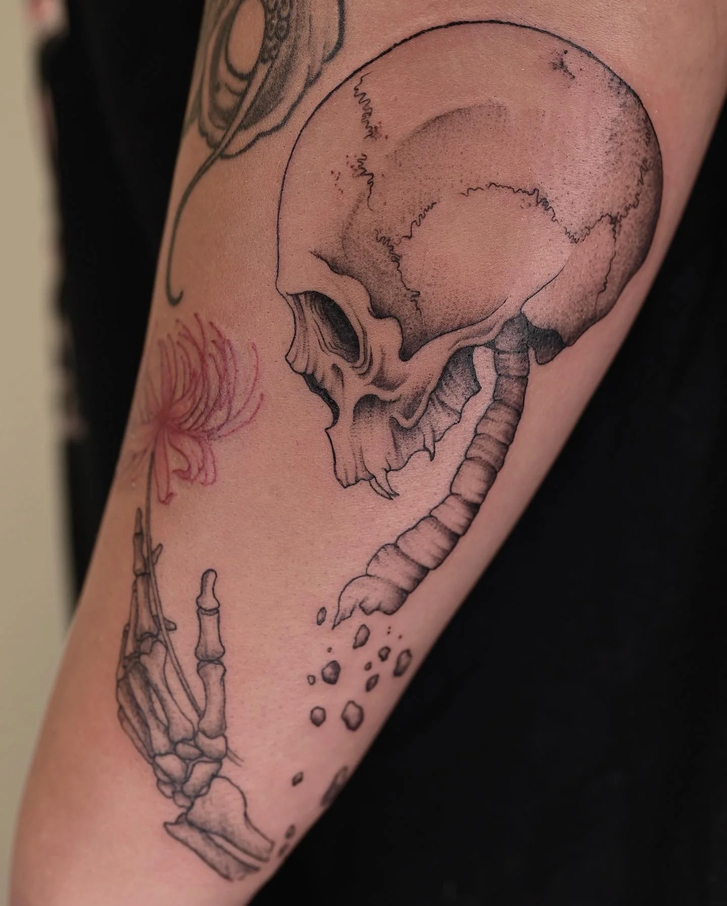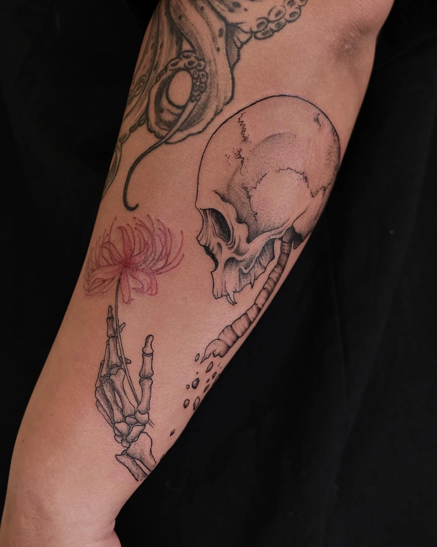 Part of a death themed patchwork sleeve for Kieana